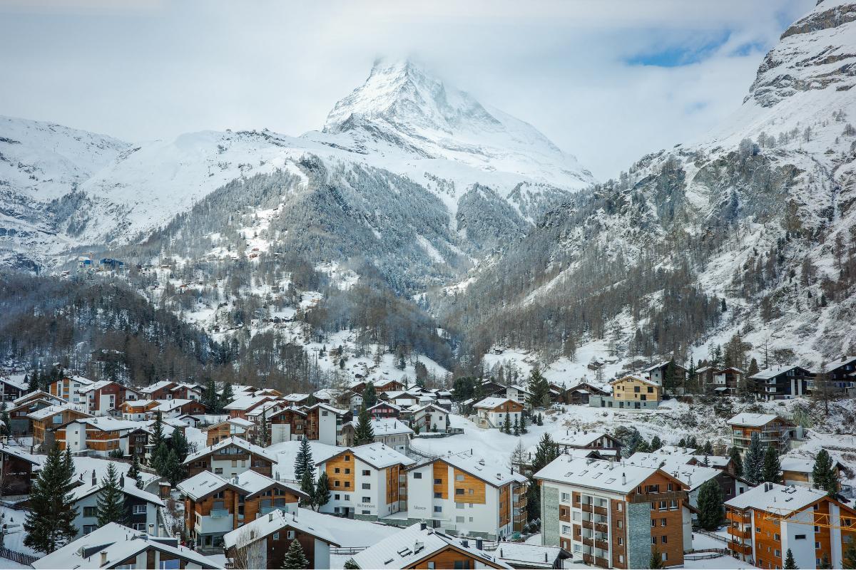 Zermatt é uma cidade alpina famosa por estar aos pés do Matterhorn, a montanha mais icônica da Suíça. Zermatt é um paraíso para esquiadores e entusiastas de esportes de inverno, mas no verão também é possível fazer caminhadas e praticar montanhismo. Zermatt não tem carros, o que lhe permite manter seu charme natural. É ideal para quem procura um refúgio nas montanhas e deseja uma autêntica experiência alpina, cercada pela natureza e com vista para o famoso Matterhorn.