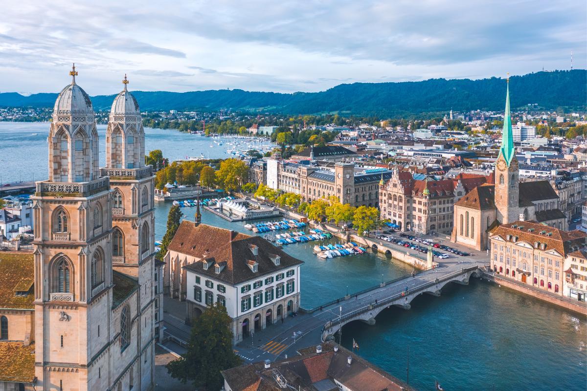 Zurique é a maior cidade da Suíça e é conhecida por sua alta qualidade de vida, caráter cosmopolita e charme histórico. Às margens do Rio Limmat e do Lago Zurique, a cidade combina o melhor da modernidade com um centro histórico repleto de ruas de paralelepípedos, igrejas medievais e museus de classe mundial, como o Museu Nacional Suíço. A famosa Bahnhofstrasse é parada obrigatória para os amantes das compras de luxo e da moda.