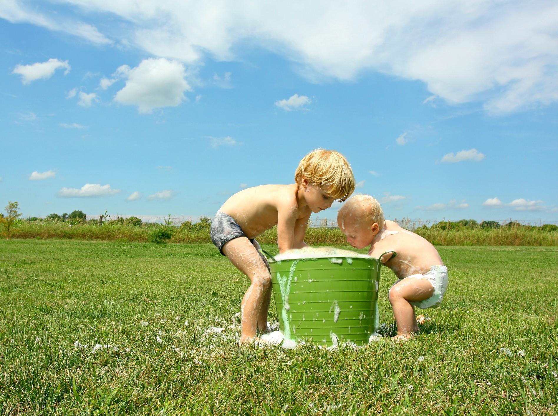 Toda criança precisa de um balde e uma esponja. O participante molha a esponja na água e a joga no ar para que os outros companheiros a peguem. Como a esponja voará encharcada de água, ela respingará e os jogadores desfrutarão de um banho refrescante.