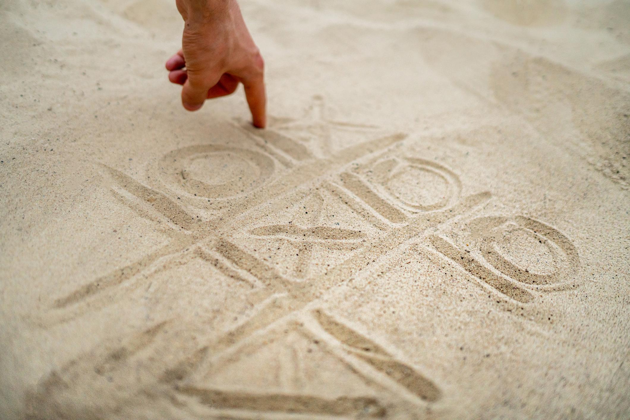 Desenhar ou escrever mensagens na areia molhada da praia é um dos melhores jogos de praia para os menores, mas se quiser algo diferente, experimente jogar o quatro em fila.