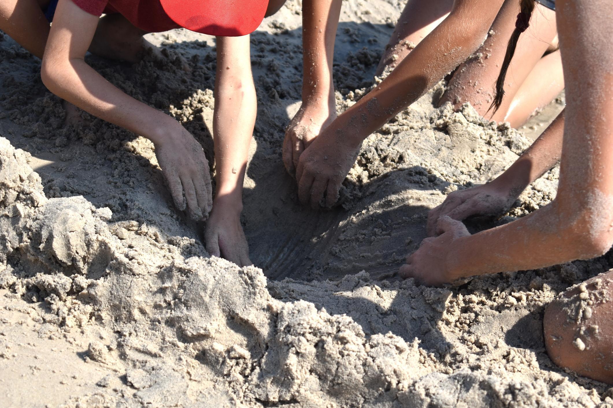Na areia dá para fazer muitos jogos e se você quer se divertir muito curtindo um dos populares jogos de praia, troque as construções clássicas por figuras cheias de imaginação que exigem que alguém seja 'enterrado' na própria areia, transformando-se, por exemplo , em uma linda sereia (com as pernas cobertas formando um lindo rabo com a areia), um polvo incrível ou qualquer outra coisa que você possa imaginar. Risos e diversão garantidos!