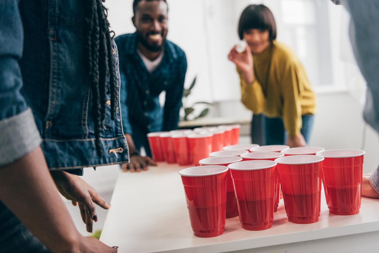 Tem uma mesa grande em casa ou no local da festa? Já tem uma brincadeira! Disponha copos descartáveis cheios de cerveja, todos do mesmo tamanho em formato de triângulo em cada ponta da mesa, ou seja, um triângulo para cada lado. Forme dois grupos, o objetivo é acertar um copo do adversário, para que ele tenha que eliminar o copo e beber a cerveja que tem dentro. O grupo que acertar todos os copos do adversário primeiro, vence. E, vale ressaltar, que para os perdedores o jogo não acaba aí - eles devem beber a cerveja renascente do grupo ganhador!