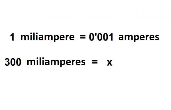 Assim, se 1 miliampere são 0'001, devemos encontrar o valor equivalente a 300 miliamperes ao qual vamos chamar de "x".
