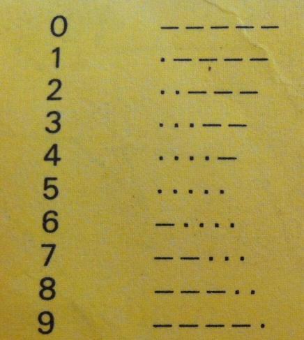 Na imagem anexa mostramos como fazer os números no alfabeto Morse.