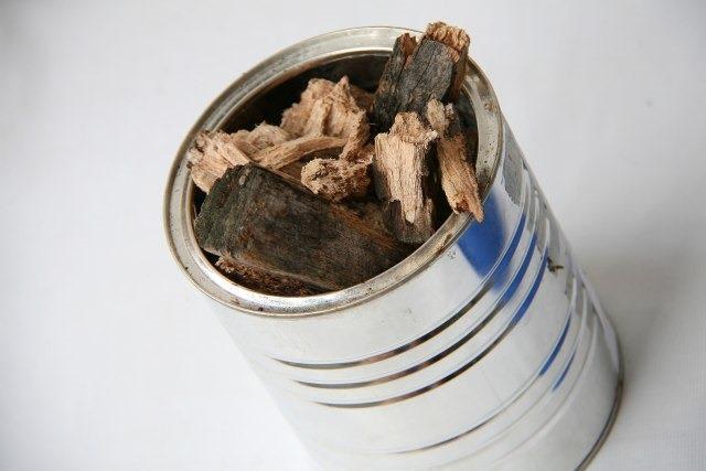 De seguida, encha o tambor menor de madeira curada. Lembre-se que o tipo de madeira mais adequado é de carvalho, nogueira ou cerejeira. Quando tiver a madeira cortada em pedaços e depositada no interior do recipiente, coloque uma tampa no tambor. Não o feche hermeticamente, deixe uma pequena entrada para que a umidade saia.