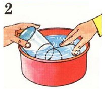 Agora incline um pouco o copo. O ar irá formar bolhas de ar na água e esta encherá o copo. Tente prender o ar num copo em baixo da água, como se vê na imagem.