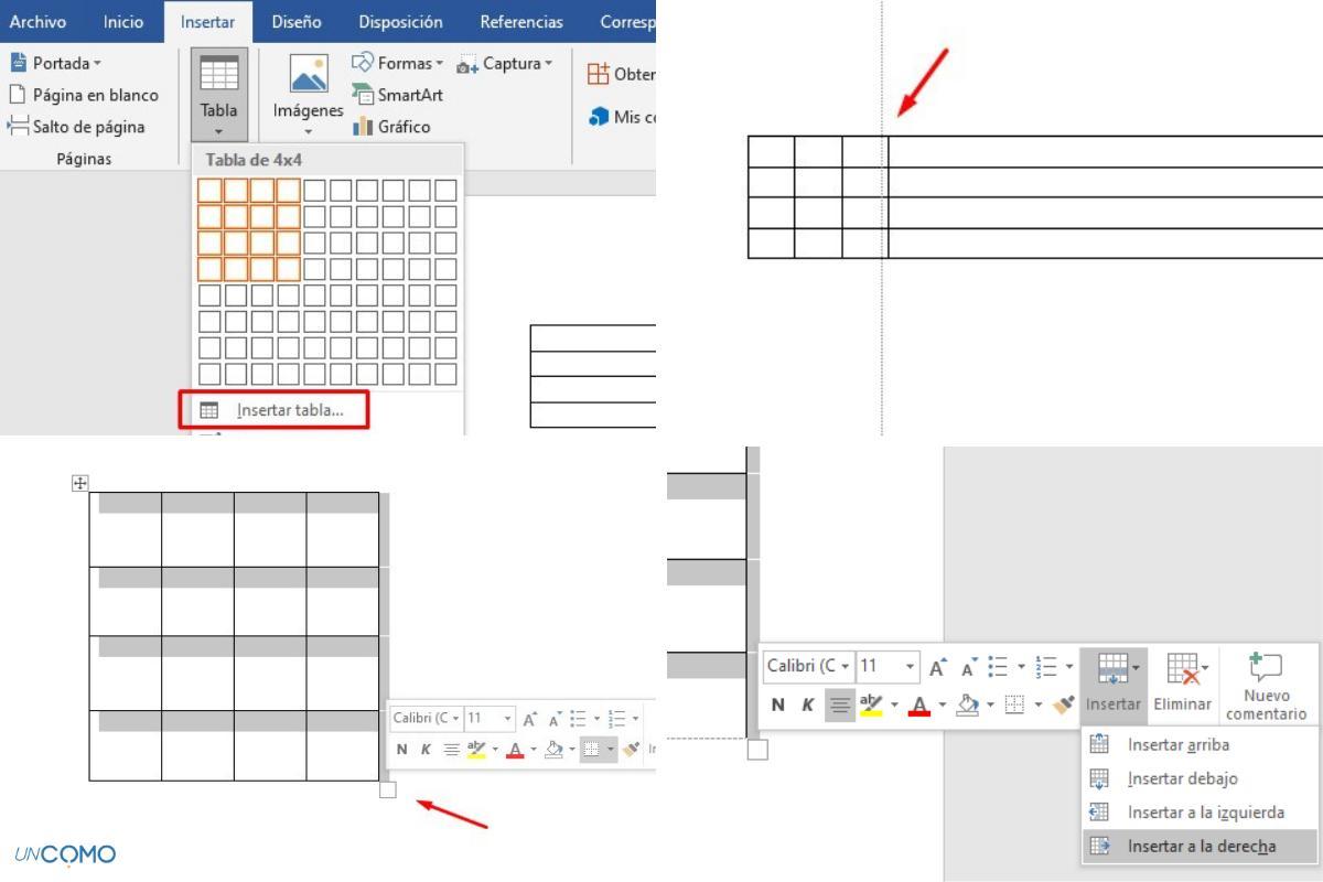 - Adicione o número de linhas e colunas que deseja dar ao caça-palavras por meio da opção Inserir tabela. Se vir que são poucas, você pode sempre adicionar mais ou eliminá-las na hora, tudo vai depender das palavras que pretende inserir ou que, pelo contrário, não te convencem tanto assim.