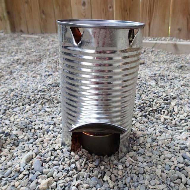 Coloque o queimador na terra, ou sobre uma superfície não inflamável. Acenda os estopins. Coloque o fogão sobre o queimador. A parte superior da lata se esquentará rapidamente. Também pode colocar uma panela pequena ou frigideira sobre o fogão de acampamento.