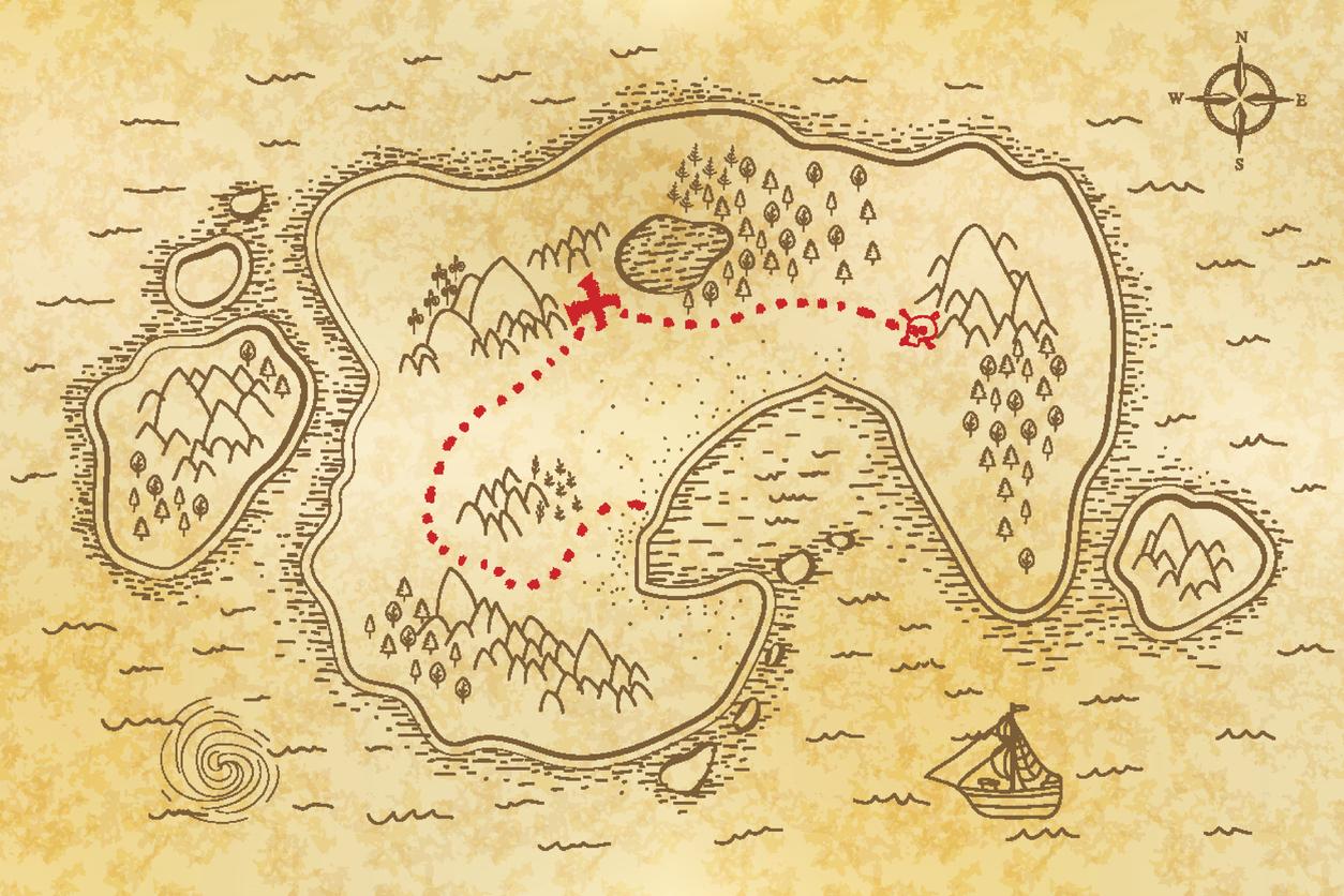 - Caminho das pedras: além dos itens gráficos, seu mapa do tesouro da caça ao tesouro precisa ter uma linha clara que indique o caminho a seguir. Desde o princípio até o tesouro, trace uma linha bem delimitada para que todos entendam o que devem fazer.