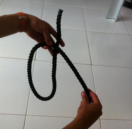 Segure o cabo e dê a seguinte forma, como pode ver na imagem da direita. Você deve pensar que tem um lago com uma árvore (importante: o lago está acima da árvore).