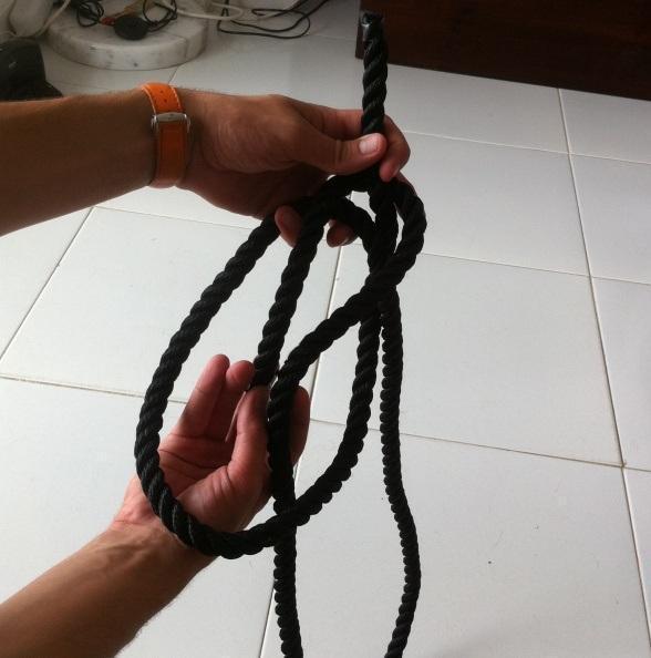Para ajustar bem o nó a última coisa a fazer é puxar a árvore, a cabeça da serpente e seu rabo.