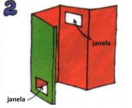 Dobre o papelão pelas linhas para formar uma caixa comprida e recorte uma janela de 5 x 5 cm perto da parte de baixo e outra perto da parte de cima no lado oposto.