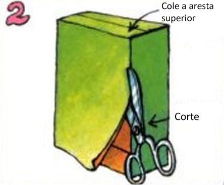 Cole com cola a aresta superior da caixa. Corte três lados da caixa para fazer a porta, como na imagem.