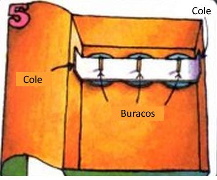 Corte uma tira de cartão um pouco mais comprida do que a largura da caixa. Faça três furos nela e coloque os fósforos neles. Cole a tira de cartão com cola aos lados da caixa.
