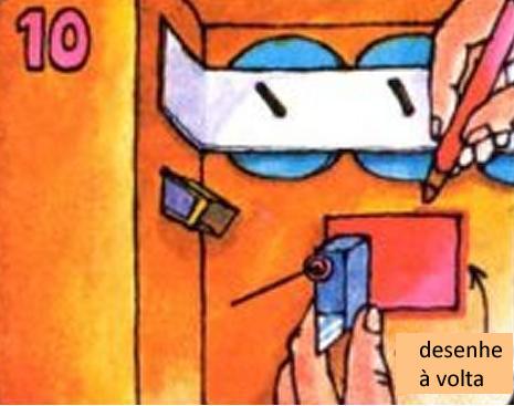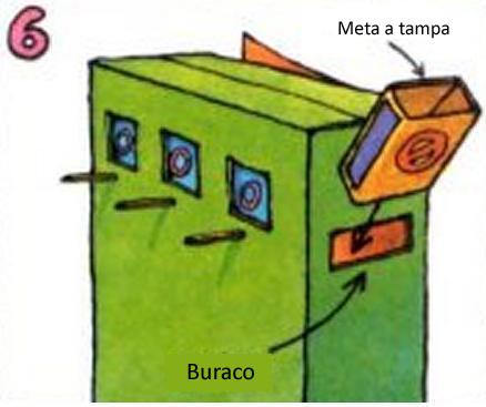 De seguida, introduza os fósforos nos círculos, utilizando os furos da caixa e coloque-os por dentro. Veja com atenção a caixa do lado de fora e faça umas janelas maiores para ver melhor os números.