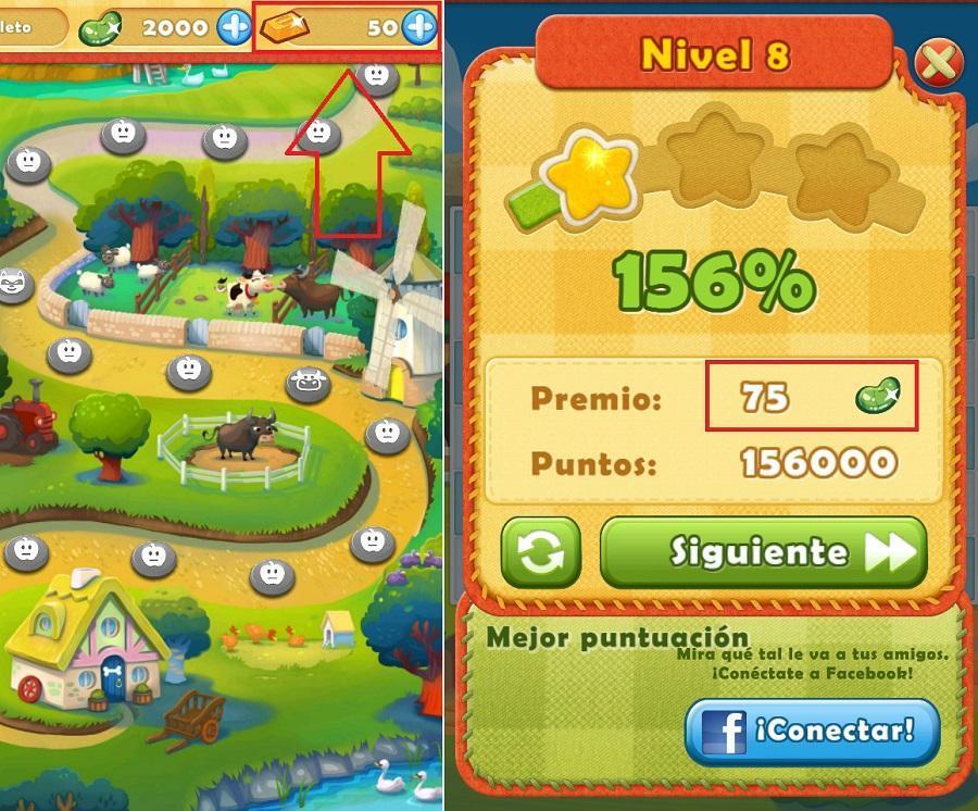 Quanto às vidas, o sistema é o mesmo que em Candy Crush, dispomos de cinco e, uma vez esgotadas, devemos esperar um tempo determinado para que recarreguem ou podemos pedir aos nossos amigos do Facebook.