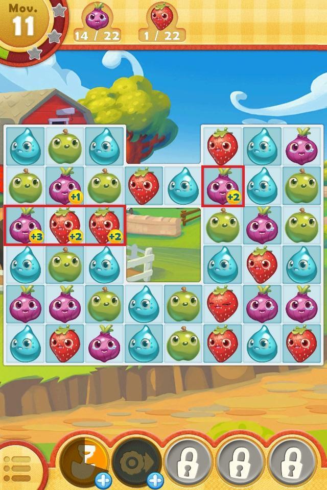 Como ocorre com Candy Crush, se juntar mais de três vegetais iguais obterá bonificações. Se combinar os vegetais próximos àqueles que contam com um 1, 2, etc., este número aumentará. Se juntar quatro vegetais do mesmo tipo, seu valor dobrará; se combinar cinco serão recolhidas todas as colheitas do tabuleiro iguais a essas; se juntá-los em forma de L ou T todos os vegetais dessa fila obterão um bônus de 1.