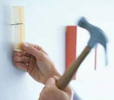 O primeiro deles é usar um pente largo de plástico, daqueles típicos que os homens usam, e colocar o prego entre qualquer uma das suas cerdas. Este ficará preso e você poderá pregar o prego na parede sem necessidade de aproximar seus dedos, evitando, assim, se machucar.