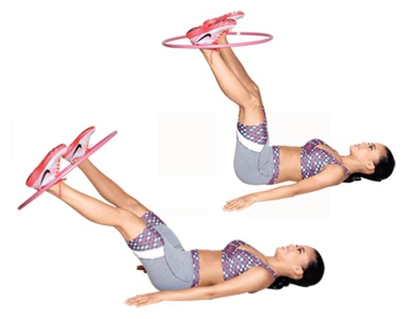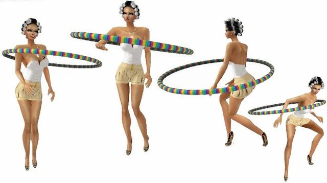 De modo semelhante é possível girar o brinquedo nos braços, um por vez. Outra dica de se exercitar com o bambolê é se deitar de barriga para cima, levantar uma das pernas e fazer com que o bambolê gire ao redor dela.