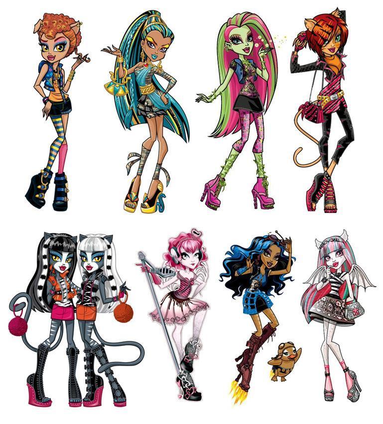 Nesta imagem poderá ver algumas das restantes personagens de Monster High, por ordem da esquerda para a direita e de cima para baixo: