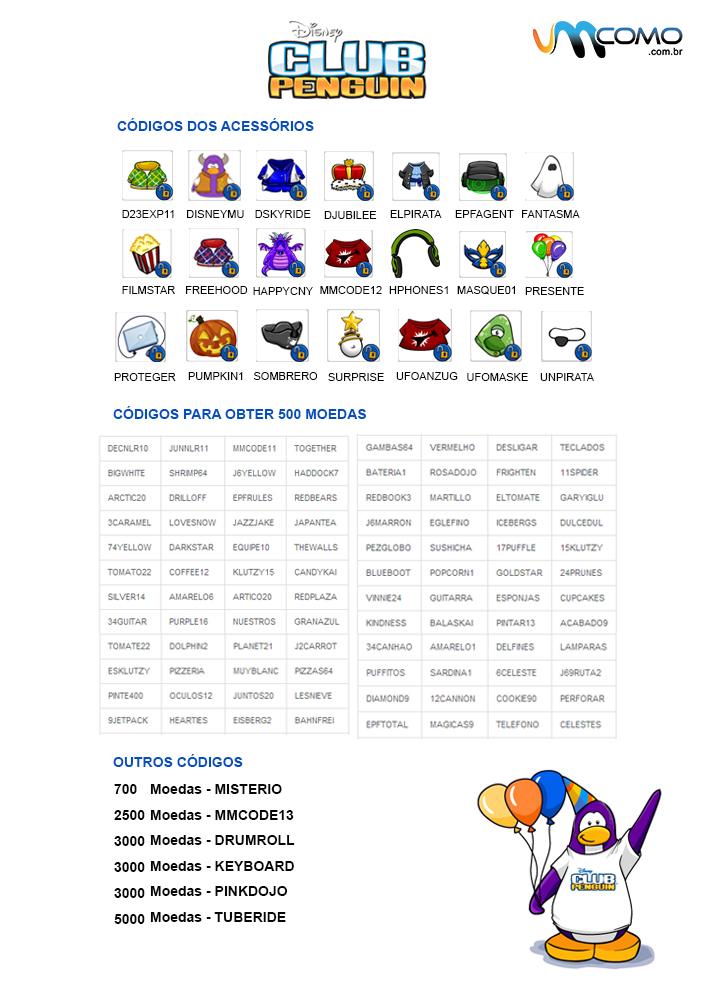 O Club Penguin é um MMOSG (Massively Multiplayer Online Social Game), ou seja, um jogo online que permite a participação de vários jogadores. Este jogo faz parte da Walt Disney Company e é direcionado para crianças entre os 8 e os 14 anos de idade, onde estas podem participar em jogos, divertir-se e interagir com um avatar pinguim num mundo virtual coberto de neve. Este é um jogo bastante seguro para os seus filhos e para conseguir jogar precisa apenas de criar uma conta gratuita. O jogo permite-lhe comprar vários itens com moedas virtuais. Algumas formas de ganhar moedas virtuais são jogando os minijogos, fazendo uma escavação na Mina de Ouro, ser um Guia de Turismo ou um Agente Secreto, onde receberá um pagamento pelo trabalho feito. No entanto, através de códigos conseguirá destravar vários itens e bolsas com moedas. Clique na imagem e conheça os códigos secretos do Club Penguin.