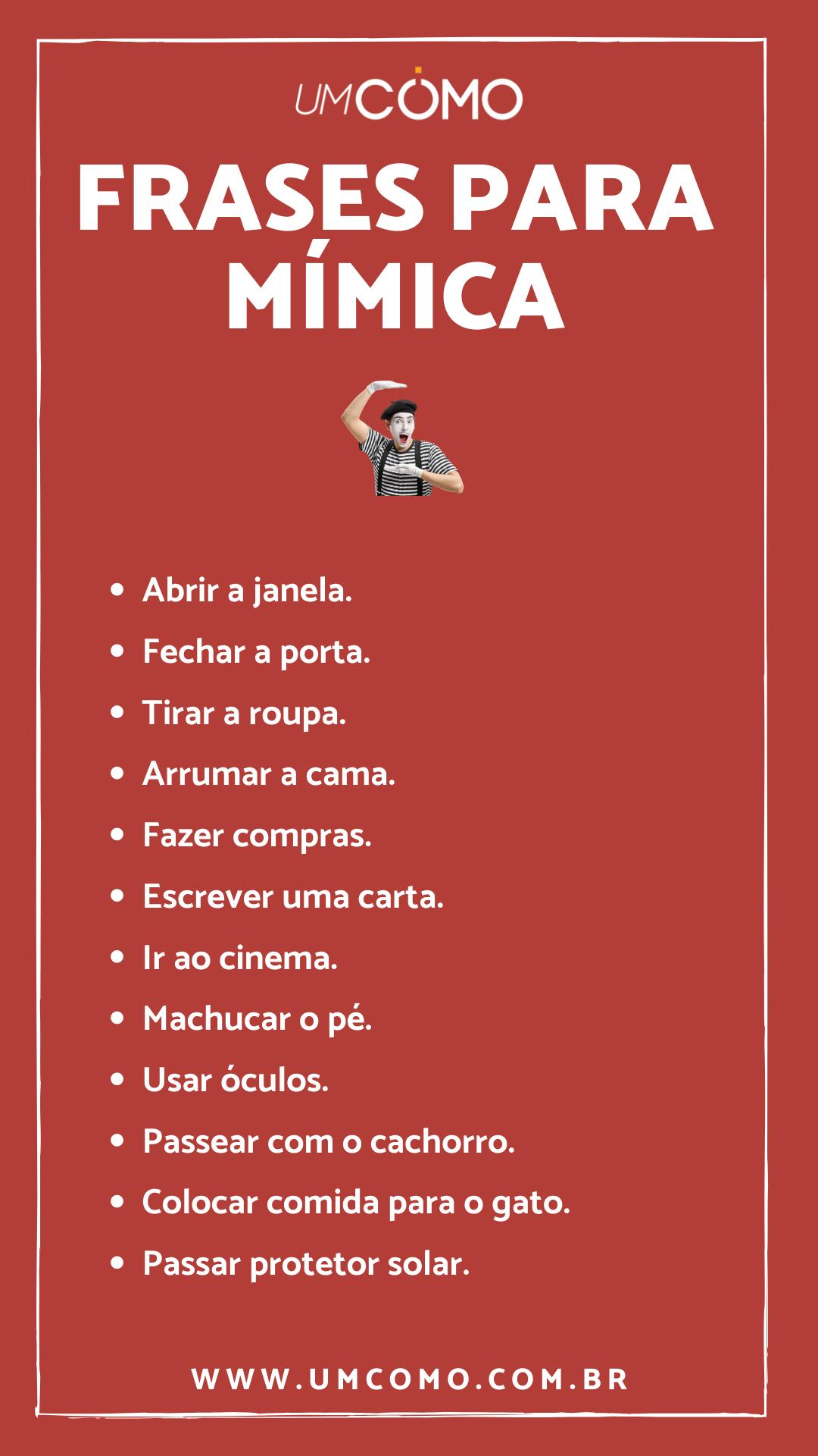 Neste artigo do umCOMO apresentamos uma série de frases para mímica - nível fácil, médio e difícil que certamente vão proporcionar bons momentos e muitas gargalhadas com seus amigos ou familiares.