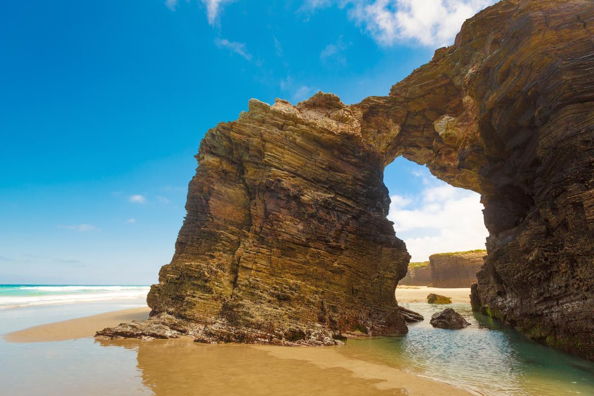 Localizada em Ribadeo, na província de Lugo, Espanha, é uma das melhores praias da Europa, e descobri-la é uma experiência e tanto. A praia das Catedrais, também conhecida como Praia de Augas Santas, não é uma praia típica. Caracteriza-se por abrigar impressionantes formações rochosas e arcos naturais, muito semelhantes às abóbadas e colunas de uma catedral gótica, daí o seu nome. Estas rochas foram esculpidas ao longo dos séculos pela ação do vento e do mar e oferecem uma paisagem única e espectacular. Explorar as formações rochosas, fazer caminhadas, observar a flora e a fauna do local ou relaxar enquanto aprecia a paisagem são algumas das atividades que poderá realizar se visitar esta incrível praia. Uma experiência única para todas as idades.
