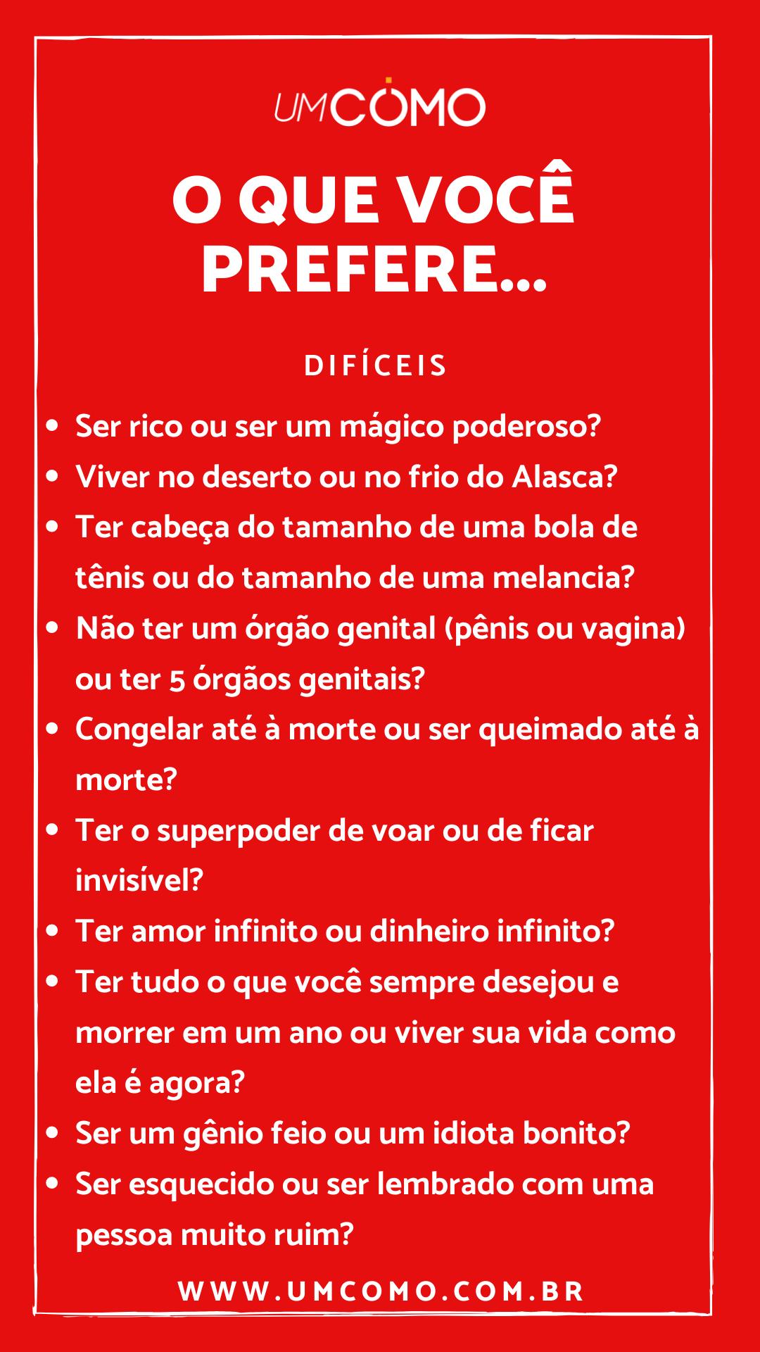 O que você prefere - perguntas difíceis