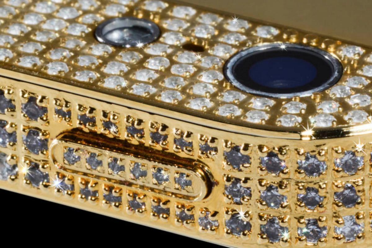 Este exclusivo iPhone 5, personalizado pelo designer britânico Stuart Hughes, é uma das peças tecnológicas mais caras já criadas. Sua capa é fabricada em ouro maciço de 24 quilates e adornada com mais de 600 diamantes, incluindo um impressionante diamante negro de 26 quilates incrustado no botão inicial.